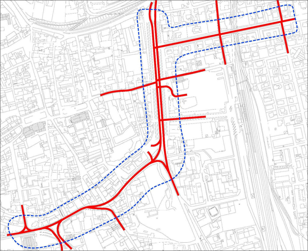 Con l’obiettivo di rilevare tutti i veicoli transitanti all’interno dell’area oggetto di studio è stato definito un cordone d’indagine che consenta di produrre una matrice Origine-Destinazione.
