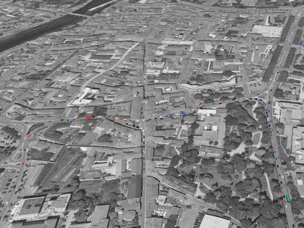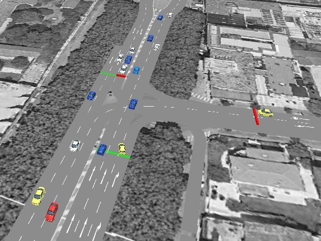 Attraverso un software di microsimulazione sono stati prodotti tre distinti scenari (1, 2 e 3), oltre allo scenario attuale (scenario 0), valutando una variazione dei tempi della fasatura (scenario 1), una modifica del ciclo di verde del semaforo di Viale delle Fosse sud e l’istituzione di un senso unico verso sud su Via IV Armata (scenario 2) e l’attuazione di un sistema centralizzato al fine di ottenere un’onda verde nord-sud, imponendo la medesima durata totale del ciclo a tutti gli impianti semaforici e mantenendo il senso unico su via IV Armata (scenario 3).
